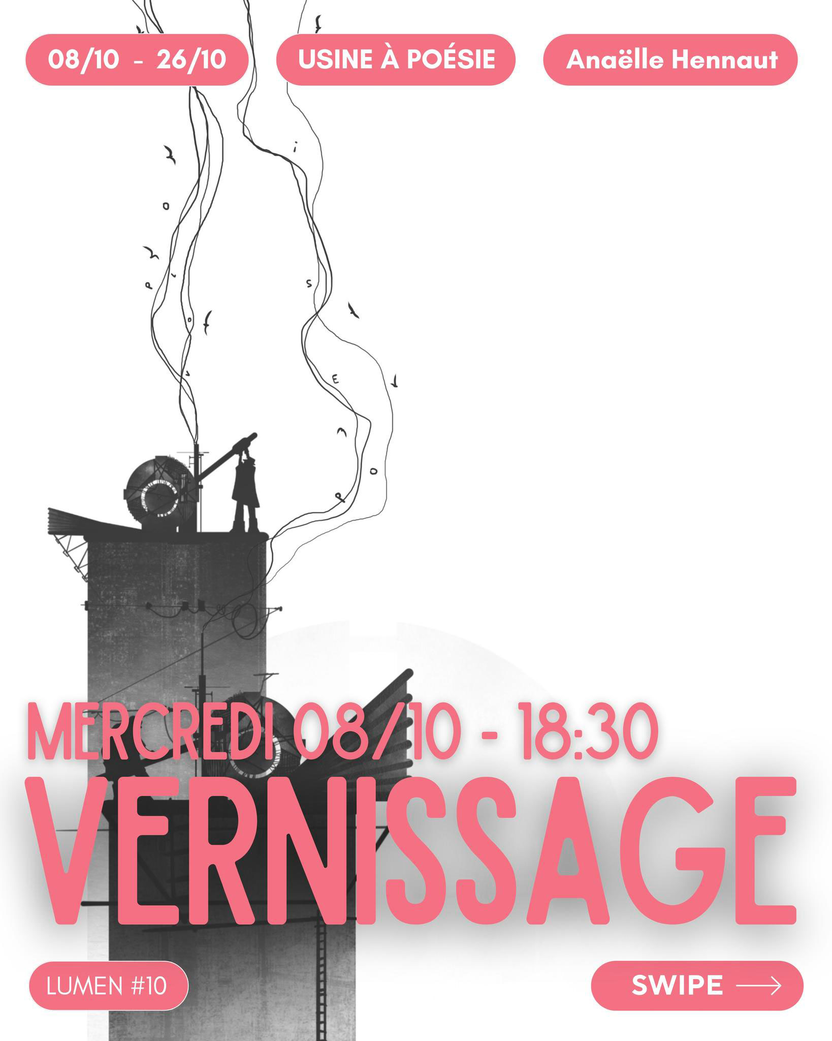 Anaëlle Hennaut, artiste mouscronnoise diplômée en Arts numériques de l’Académie des Beaux-Arts de Tournai , explore l’Usine à poésie. Son travail mêle ombres et lumières, paysages industriels et une production intense, à travers sculptures lumineuses, vidéos, animations, dessins et collages. Elle fusionne geste plastique et écriture poétique, questionnant les liens entre textes, images et sons, et abordant la lutte des classes et les conditions ouvrières.