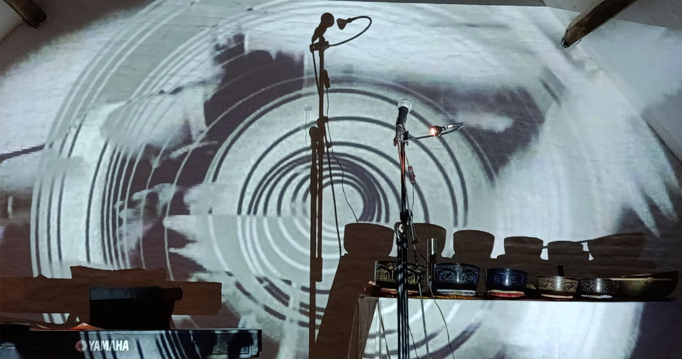 L’artiste Isa*Belle est ensuite venue enrichir ce voyage audio-poétique, où se rencontrent voix, piano et électronique, en y apportant la dimension vibratoire de ses bols chantants et de ses gongs. Cette expérience immersive est soutenue par une mise en lumière en direct, conçue et opérée par le créateur visuel et multimédia 眯腊 (mira), qui dialogue avec les images projetées et la musique.