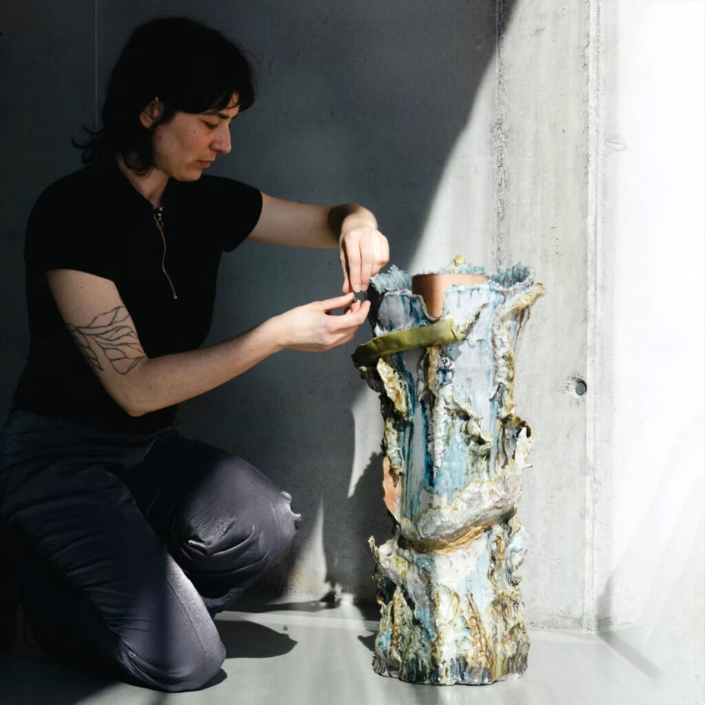 Mêlant céramique, mouvement et son, Roxane Rajic puise ici son inspiration dans le monde souterrain. L’installation active des sculptures-machines en céramique par l’eau, le souffle et le geste, et fait émerger un paysage sensible traversé de dynamiques invisibles, de circulations, de frottements et d’échos. Dans ce travail, l’interaction n’est pas un simple déclenchement technique : elle engage le corps, l’attention et une relation plus consciente aux gestes qui nous relient individuellement et collectivement.