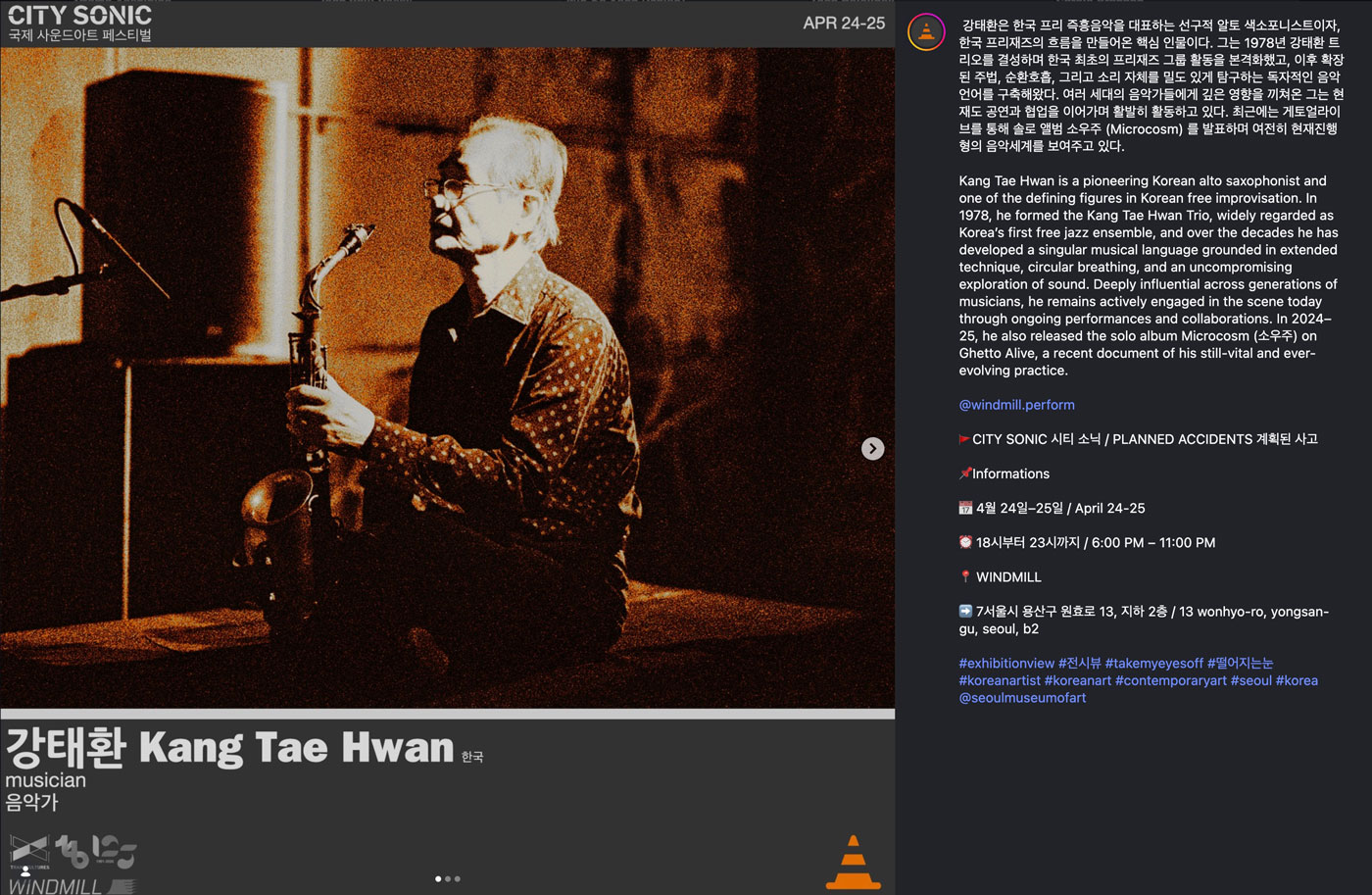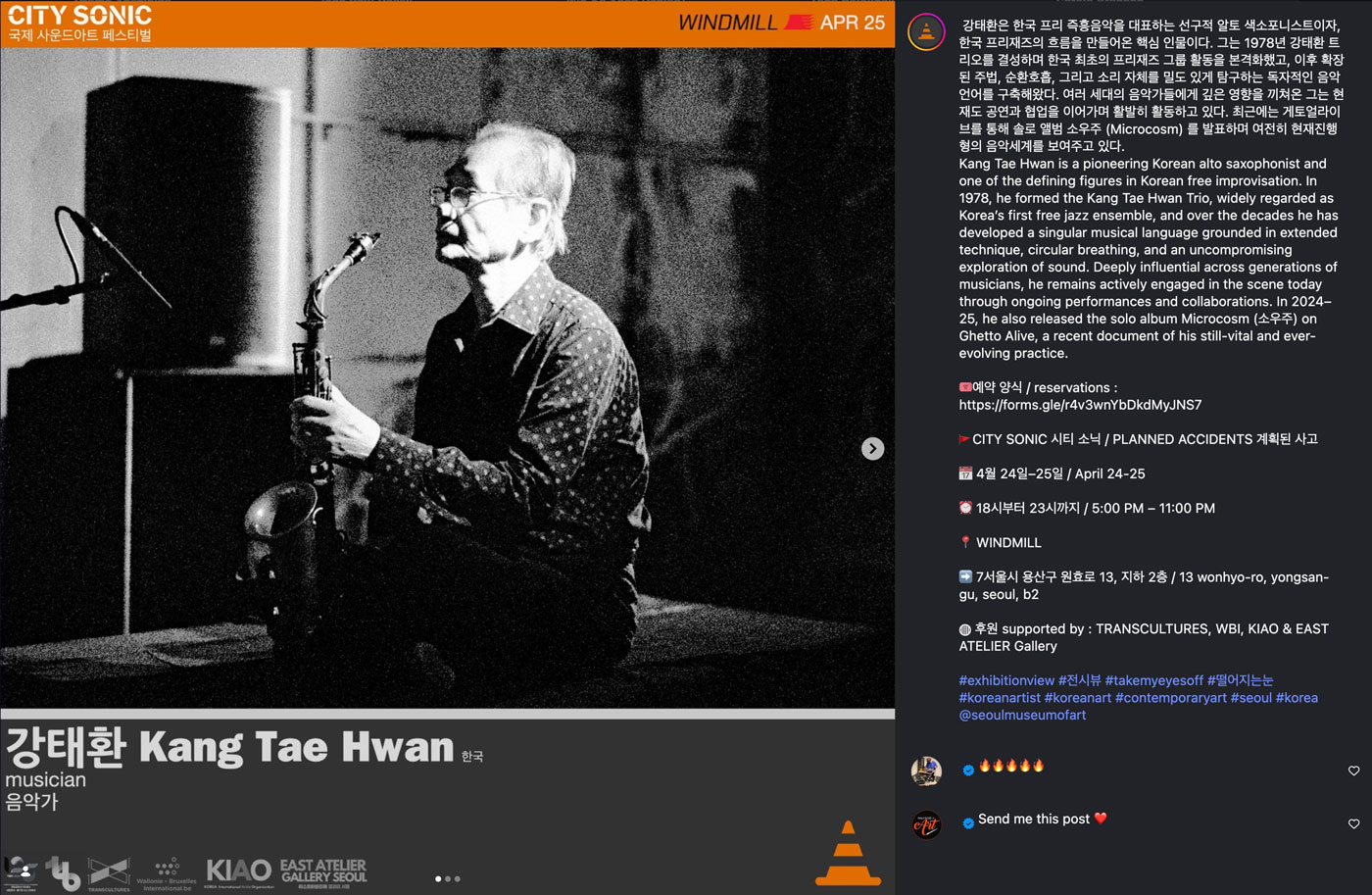 Installé au Windmill, City Sonic Seoul propose ainsi une immersion dans des pratiques artistiques où le son devient à la fois matière, espace d’écoute, outil critique et terrain d’échange interculturel.