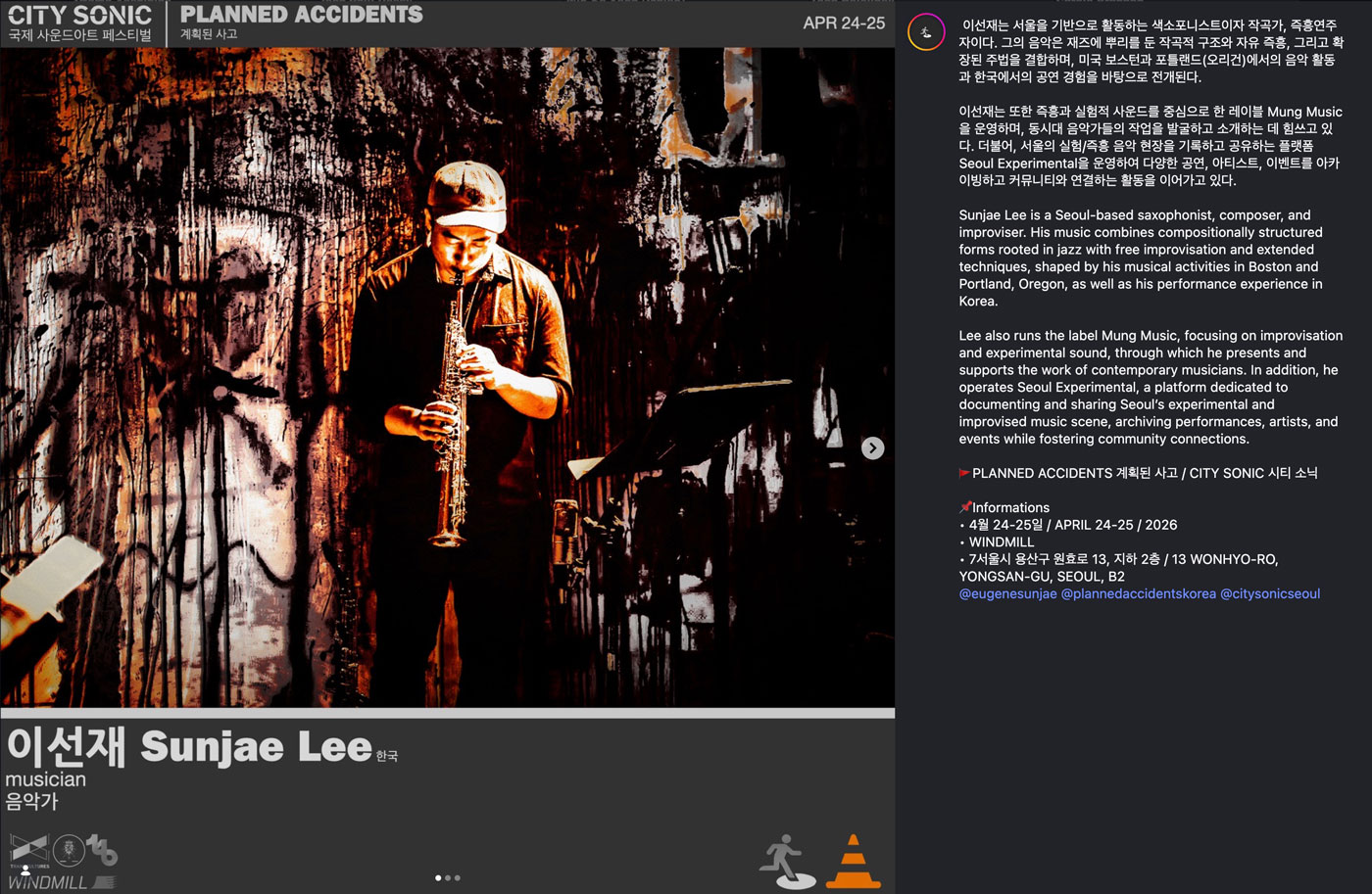 24 > 25.04.2026 | City Sonic x Planned Accidents | WINDMILL (Séoul – Kr)