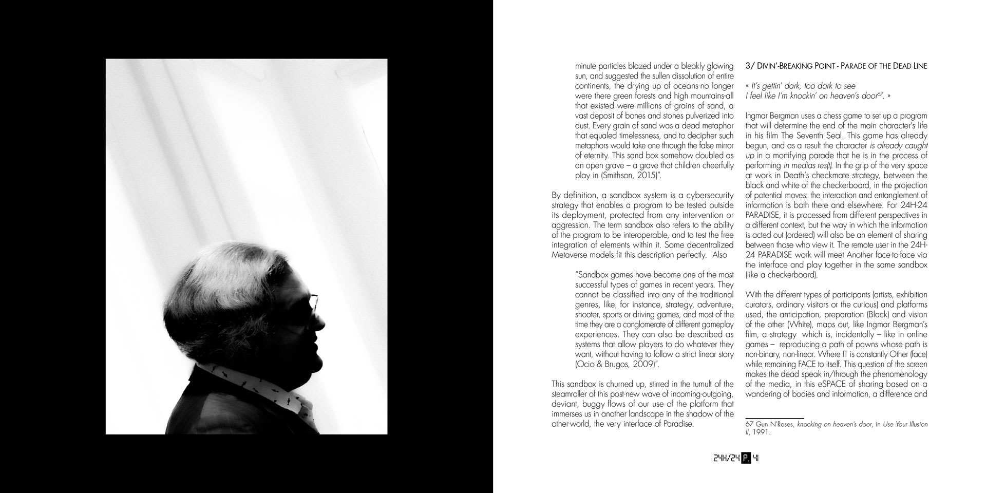 The book’s architecture is non-linear. You can enter at any page, drift from an interview excerpt to a drawing, from an encrypted image to a sequence of words addressed to no one. Thematic clusters emerge, without ever fixing interpretation: affective inter-worldliness, glitch strategies, embodied archives, speculative geographies, connected bodies, cybernetic rites of passage. It thus produces its own conditions of reading, at once fragmentary and cumulative, immersive and dislocated. It posits no centrality, except that of an absent presence around which texts, gestures, sounds and silences gravitate. More than a tribute, 24h-24 PARADISE acts as a network of persistences: each contribution plays the role of an emission point, a relay, a transformer. Nothing is closed; everything remains to circulate.
